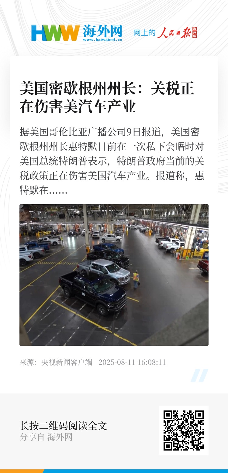报道指出,汽车产业是密歇根州的支柱产业,美国三大汽车制造商通用、福特与斯特兰蒂斯汽车公司在密歇根州拥有约50家工厂,汽车产业为该州创造了近60万个工作岗位。然而美国劳工统计局数据显示,特朗普政府上台以来,密歇根州已经有7500个工作岗位消失,当地汽车产业遭到关税政策的沉重打击。专家指出,如果这一情况持续下去,密歇根州作为重要摇摆州之一,其民意将出现逆转,特朗普政府将受其关税政策的反噬。