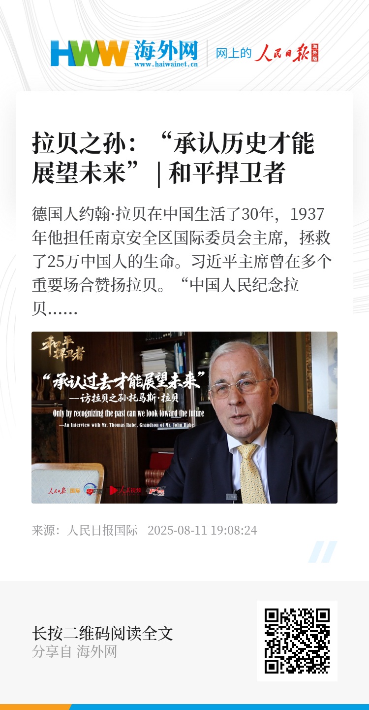 习近平主席曾在多个重要场合赞扬拉贝。“中国人民纪念拉贝,是因为他对生命有大爱、对和平有追求。”2014年,习近平主席在德国科尔伯基金会上这样表示。