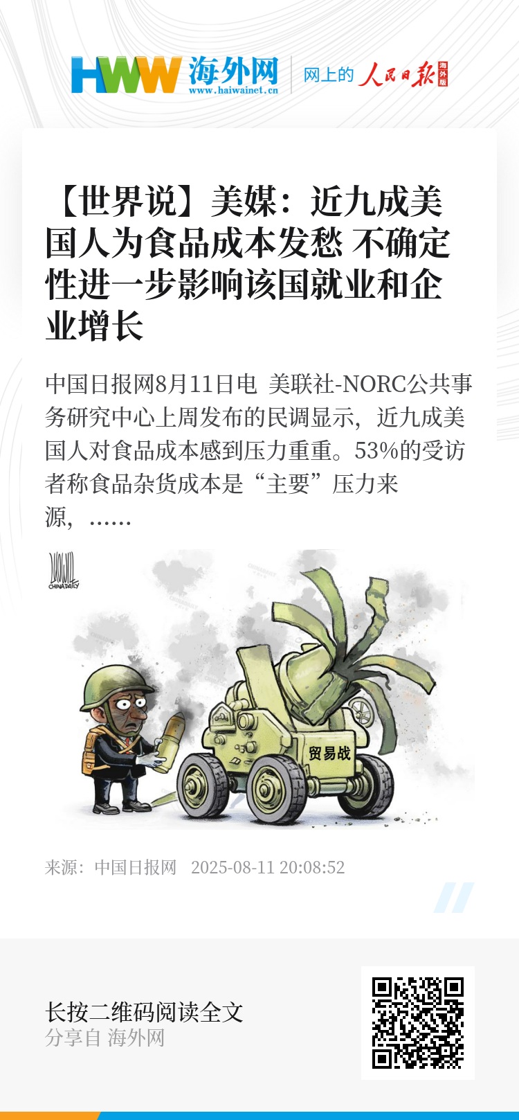 贸易战的反噬。(来源:中国日报 罗杰 英文《中国日报》2025年8月7日8版)
