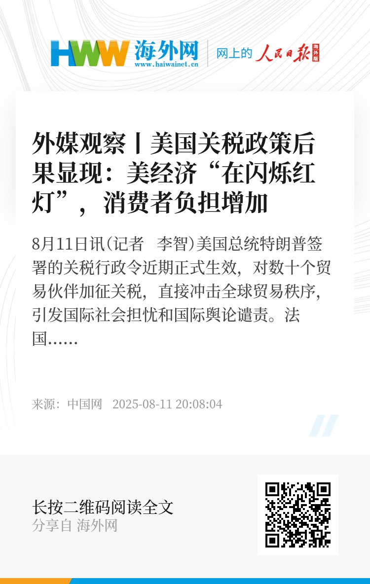 中国网8月11日讯(记者 李智)美国总统特朗普签署的关税行政令近期正式生效,对数十个贸易伙伴加征关税,直接冲击全球贸易秩序,引发国际社会担忧和国际舆论谴责。
