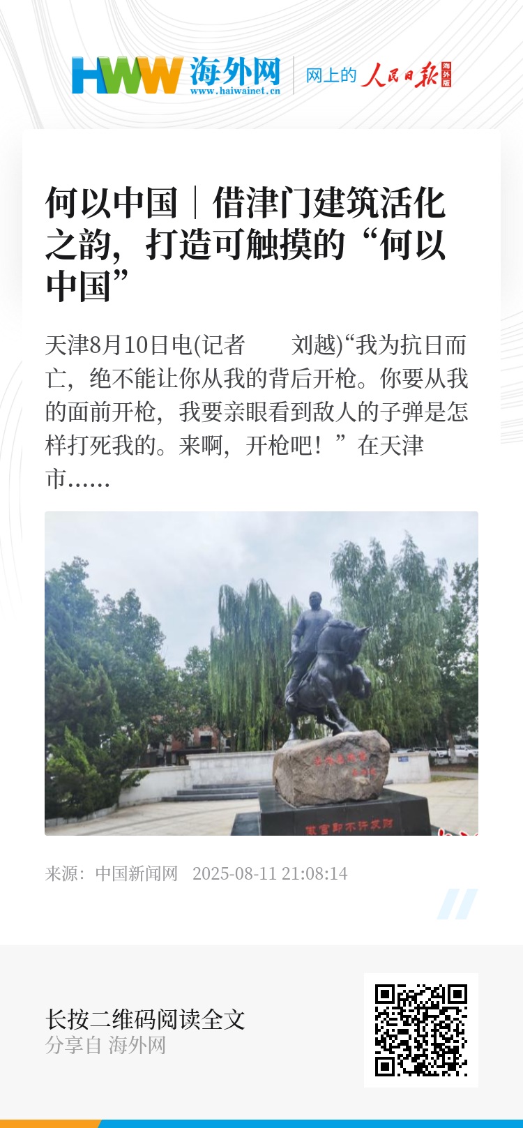 历史的长河奔涌向前,文化的传承生生不息。天津以历史建筑为支点,撬动文旅融合新发展的实践证明,当历史场景被精心还原,文化精神被创新表达,老建筑就能焕发新生机,成为滋养城市文化自信、连接过去与未来的“密码”。这不仅是天津的探索,更为全国历史建筑资源的活化提供了生动范本。