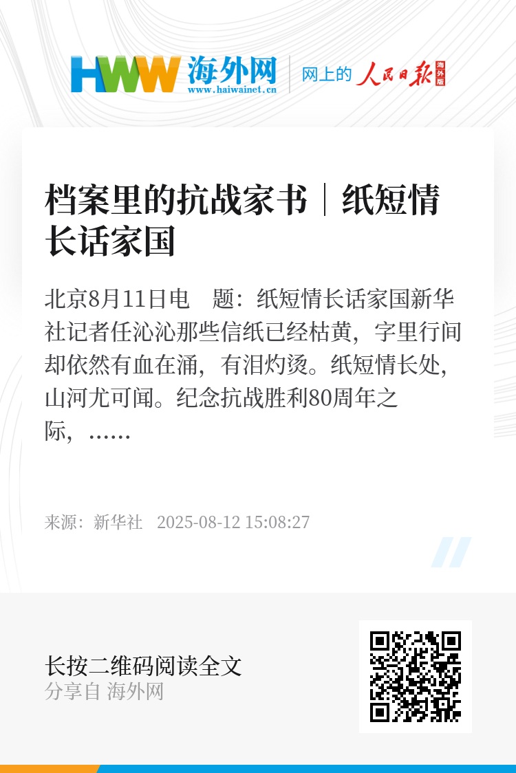 纪念抗战胜利80周年之际,重读烈士家书。这是生命的吟唱,也是英雄的绝响;是亲情的牵挂,也是燎原的星火。