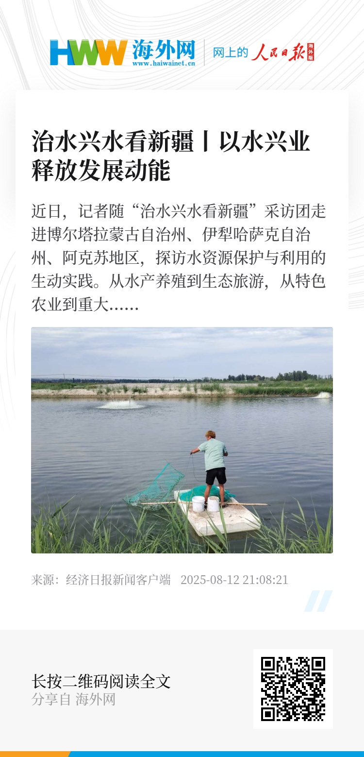 在这片广袤的土地上,水是自然的馈赠,是发展的源泉。治水与兴水的脚步相辅相成,依水而兴的产业日益多元,生态之美与产业之富相得益彰,推动新疆在绿色发展道路上不断前行。