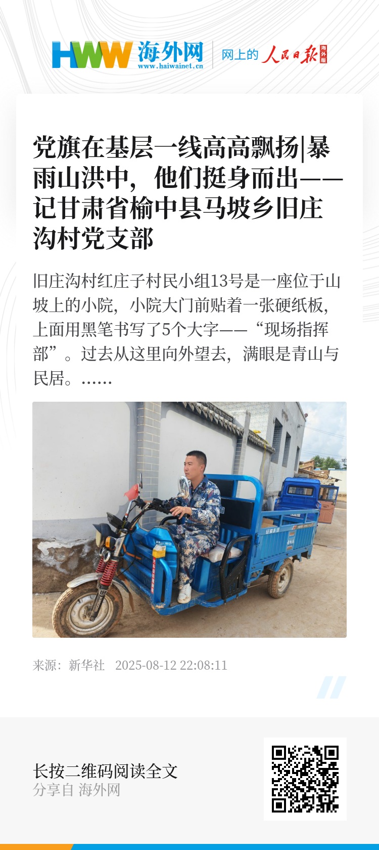8月7日傍晚至8日晨,甘肃榆中县等地连降暴雨,引发山洪灾害。截至10日12时,灾害造成15人遇难、28人失联。位于甘肃省兰州市榆中县马坡乡的旧庄沟村便是此次受灾严重的区域之一。