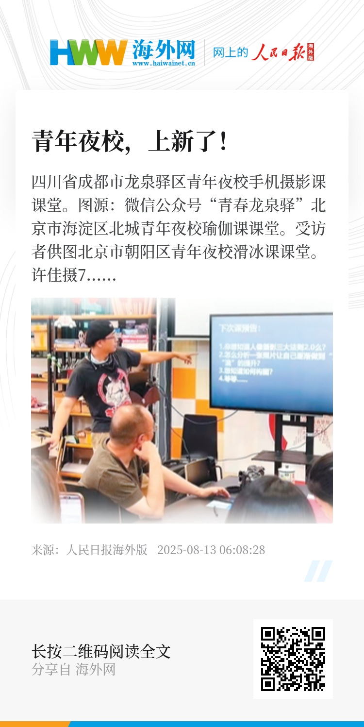 近日,笔者采访了北京、四川成都、广东顺德等多地的青年夜校,与属地团青组织、夜校老师、夜校学员等交流,看青年夜校为何深受大家欢迎。