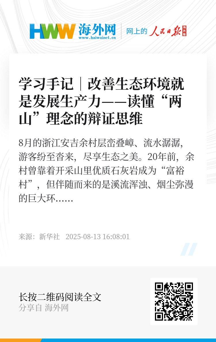 “就是”二字,振聋发聩,精辟道破二者的辩证关系。发展与保护,不再是非此即彼的“单选题”。通过转变发展理念、优化发展路径,绿水青山可以转化为金山银山,实现经济社会发展与人口、资源、环境相协调。
