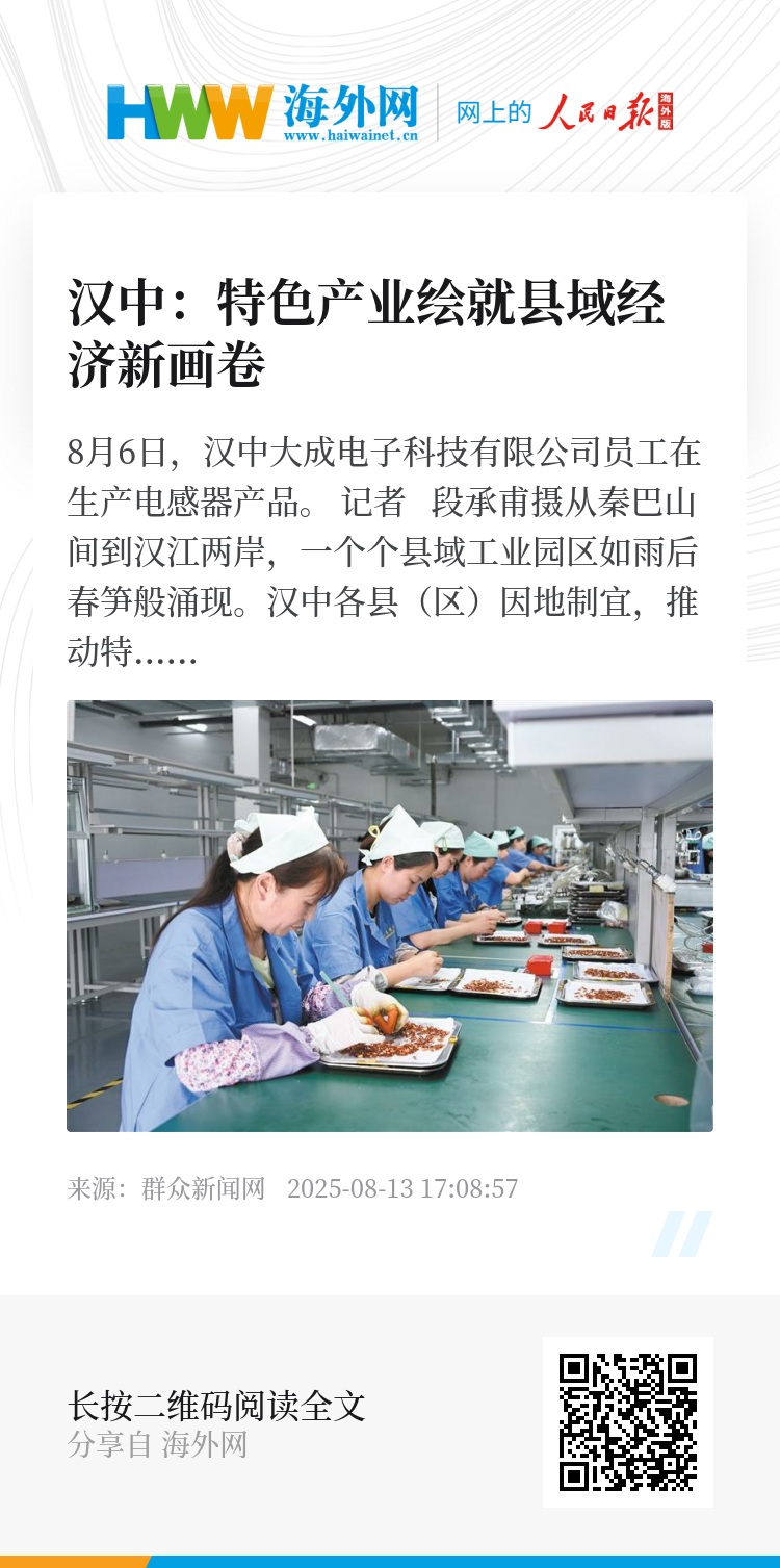 从秦巴山间到汉江两岸,一个个县域工业园区如雨后春笋般涌现。汉中各县(区)因地制宜,推动特色产业向规模化、品牌化发展。绿水青山间,一幅生态美、产业兴、百姓富的画卷正徐徐铺展。