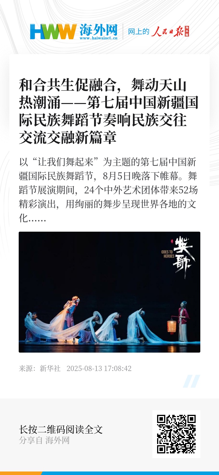 第七届中国新疆国际民族舞蹈节的聚光灯已暂时暗下,但那融入血脉的艺术韵律、那人群中绽放的笑容、那青年眼中闪烁的光芒、那跨越地域的文化理解,都已深深印刻在每一个参与者的心中。