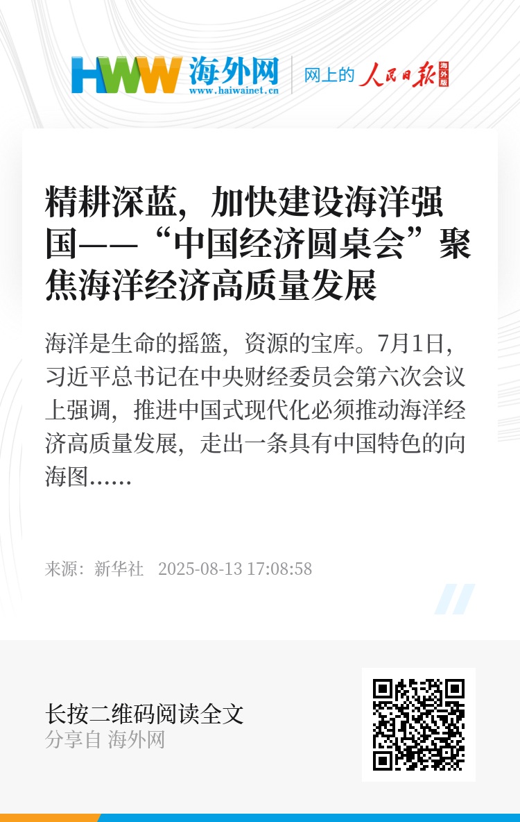 新华社推出“中国经济圆桌会”大型全媒体访谈节目,邀请国家发展改革委区域协调发展司副司长马维晨,自然资源部海洋战略规划与经济司司长古妩,国家海洋信息中心副主任、研究员李双建,山东省海洋局局长王仁堂共话海洋经济。