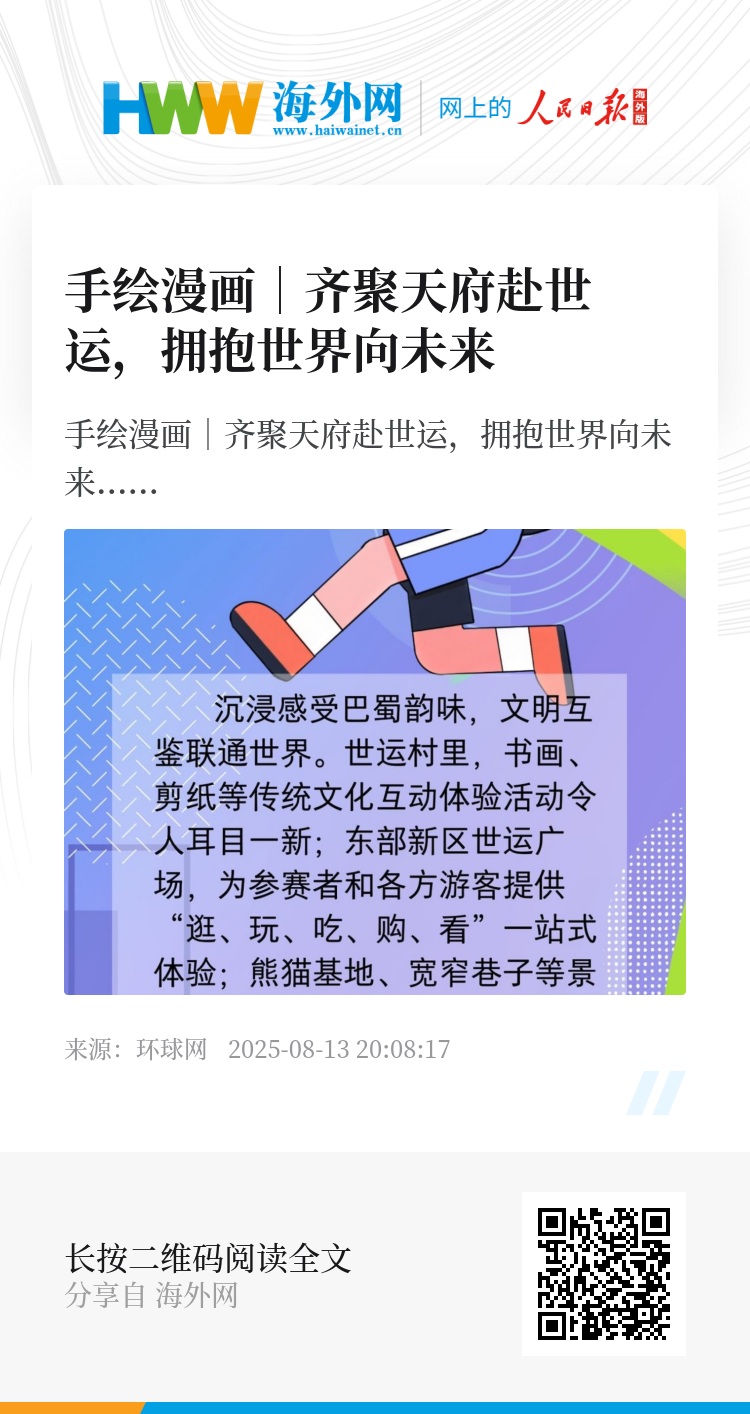 手绘漫画|齐聚天府赴世运,拥抱世界向未来