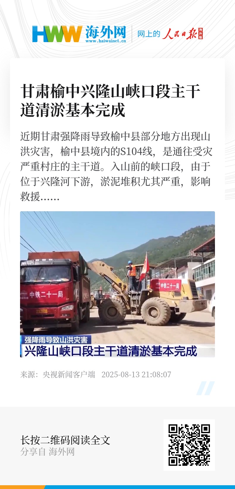 总台记者 崔林欣:这是甘肃省兰州市省道104段的榆中段,在山洪灾害发生之后,这里是作为一条非常重要的救援通道。前两天,这里的道路上淤泥堆积还是很多的,但这两天随着多部门的合力抢修,现在淤泥已经逐步被清理掉了。