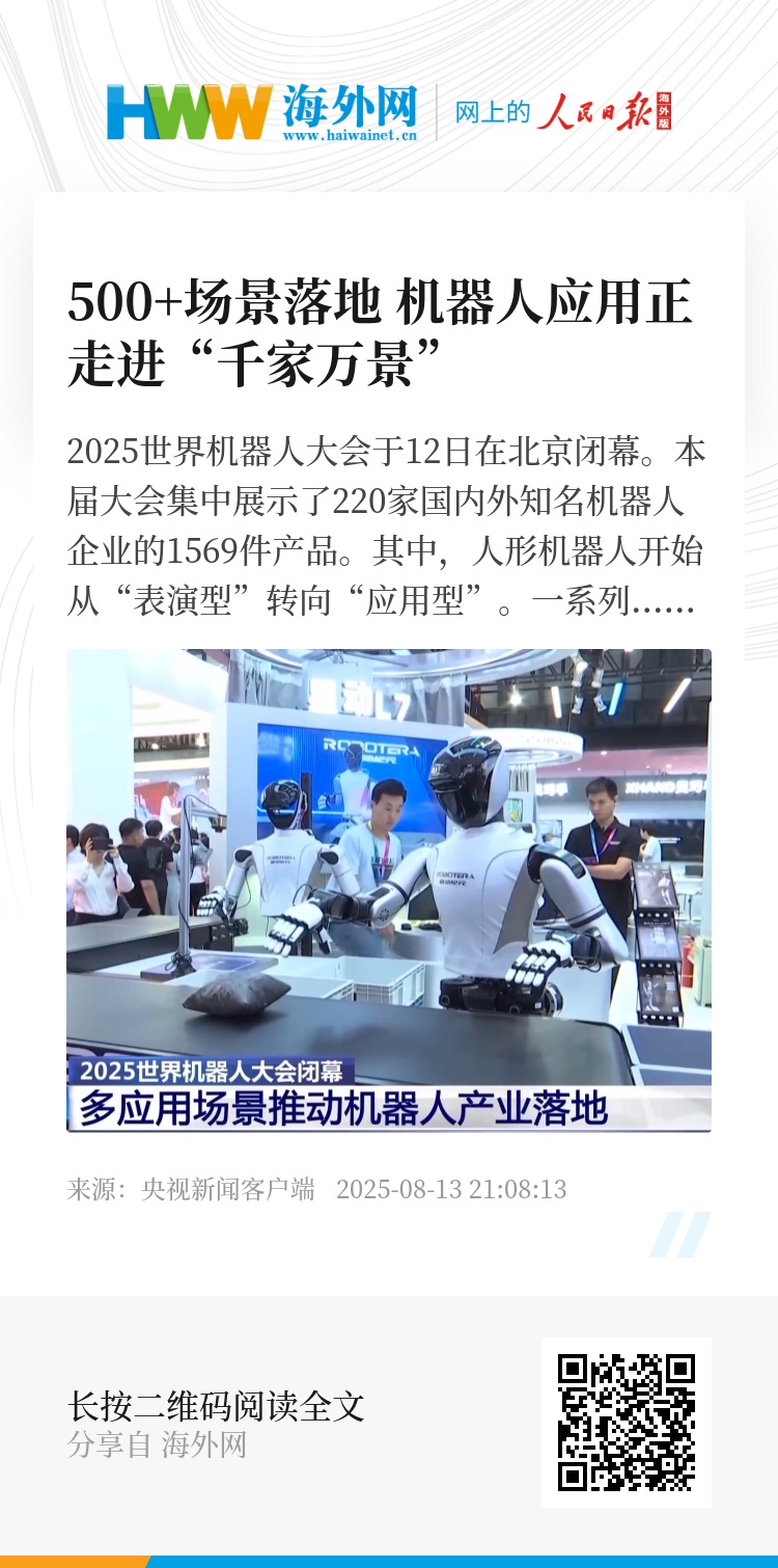 2025世界机器人大会于12日在北京闭幕。本届大会集中展示了220家国内外知名机器人企业的1569件产品。其中,人形机器人开始从“表演型”转向“应用型”。一系列应用场景落地,为我们带来了未来已来的体验。