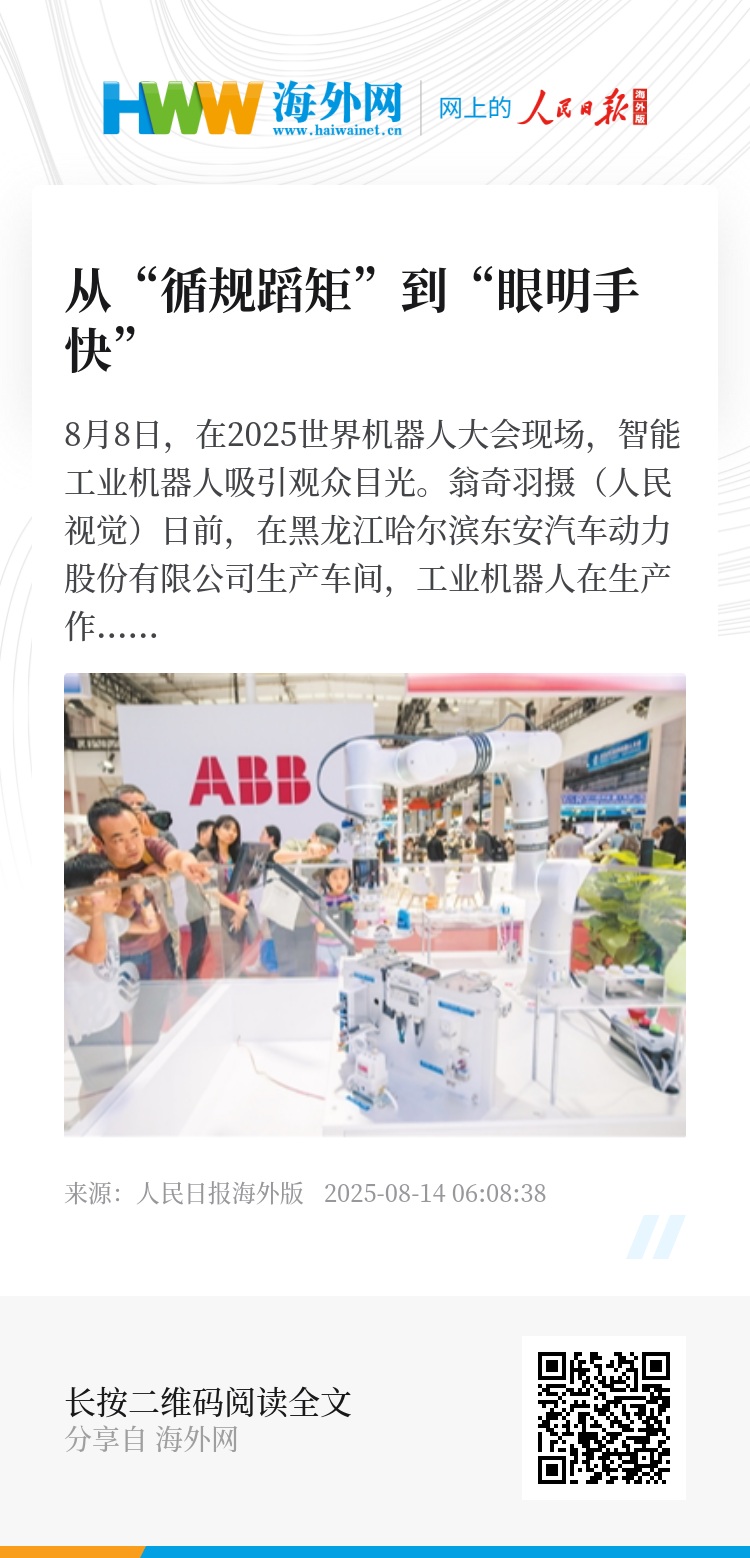 未来,工业机器人的“眼睛”“手臂”“大脑”及移动能力将持续迭代升级,还会以一次次技术突破,不断重新定义智能制造的边界与可能。(本报记者 陈静文)