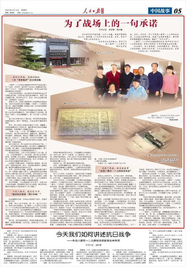 而安怀的后代,也从此与张家、八路军一二九师纪念馆保持着联系。安怀的子女们告诉记者,2018年,他们到武汉与张安见面;2024年,他们到涉县参观纪念馆。“以后,我们还要这么互相走动下去,让子孙后代来参观学习。”