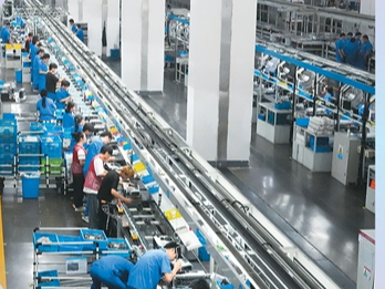 在位于浙江省台州市的杰克科技股份有限公司台州湾工厂,工人在生产线上工作。该企业的智能化设备目前已积累了3200多项有效专利与软件著作权。新华社记者 翁忻旸摄