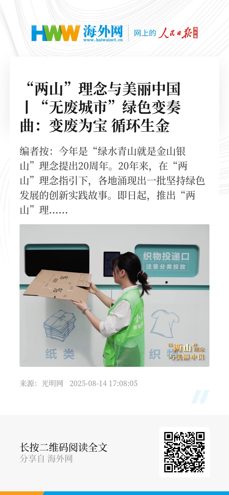 编者按:今年是“绿水青山就是金山银山”理念提出20周年。20年来,在“两山”理念指引下,各地涌现出一批坚持绿色发展的创新实践故事。即日起,光明网推出“两山”理念与美丽中国系列报道,探访“生态绿”与“烟火气”共生图景,展现“绿意生金银”的生动实践。