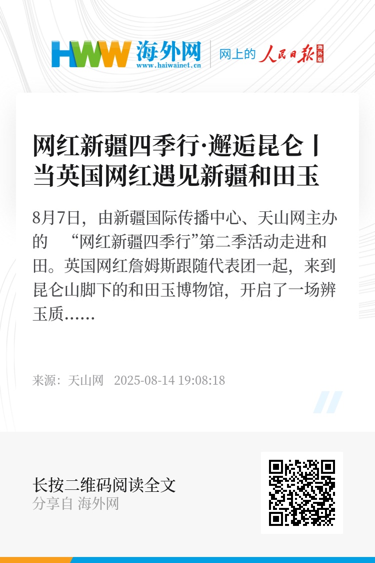 英国网红詹姆斯跟随代表团一起,来到昆仑山脚下的和田玉博物馆,开启了一场辨玉质、识匠心的文化探秘之旅。