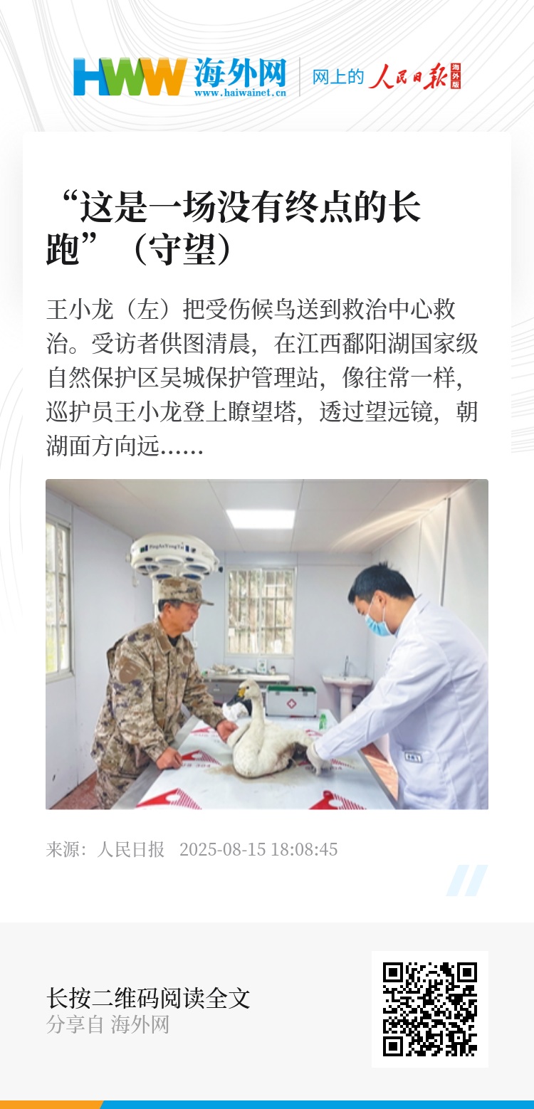 近1.4万个日夜,徒步巡湖40多万公里,协助查处偷猎候鸟和破坏湿地案件180多起……这些数字背后,有王小龙用脚步丈量出的坚守,也有他为此付出的牺牲。