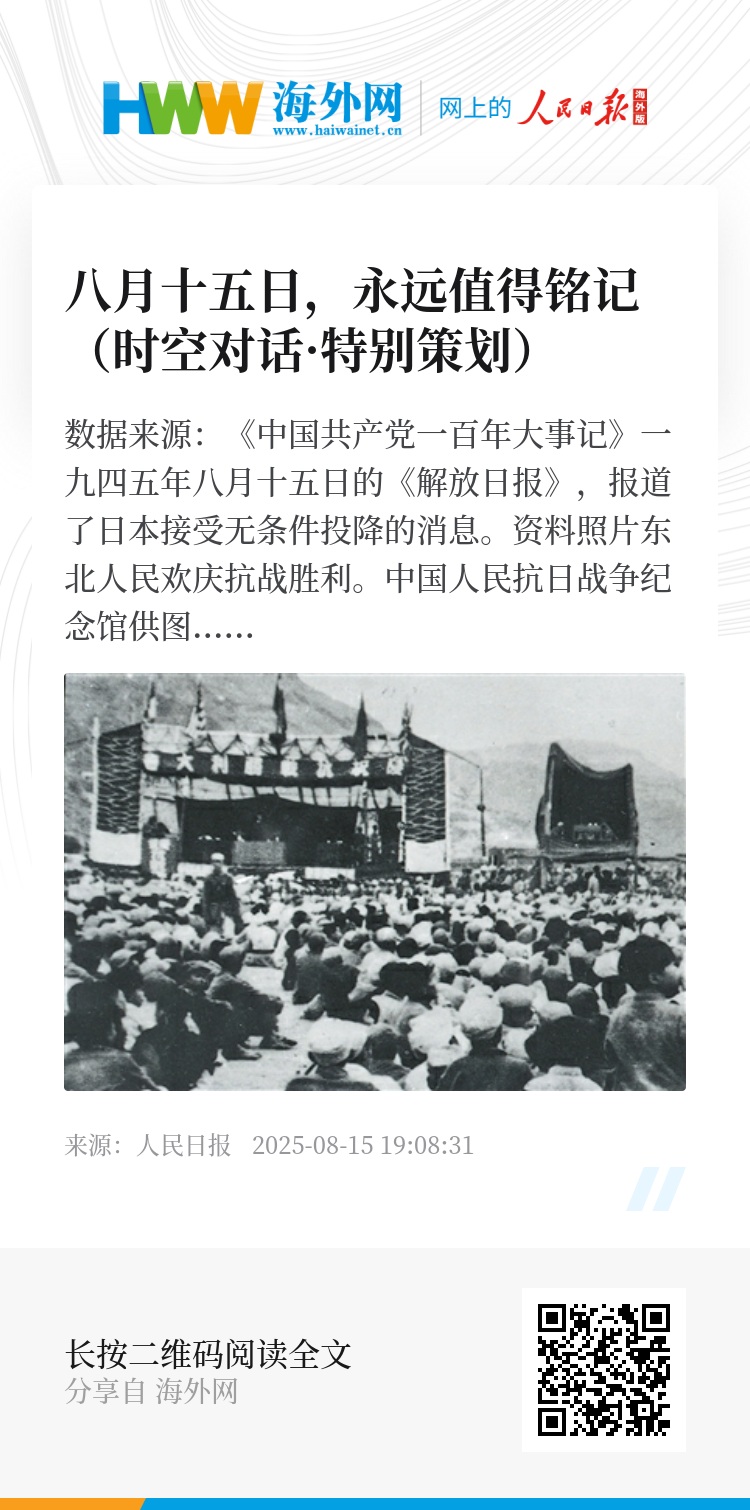 1945年8月,我收到了一份所有人翘首以盼的电报。日本投降了,我高兴得不得了。我们电报科一收到电报,马上就交给机要科翻译。为了这一刻,大家等了太久。国家强盛了,个人才有尊严。现在不用再流血牺牲了,但先辈们的精神仍要传承下去。我唯一的愿望就是,祖国更加强盛,人民生活更加美好。