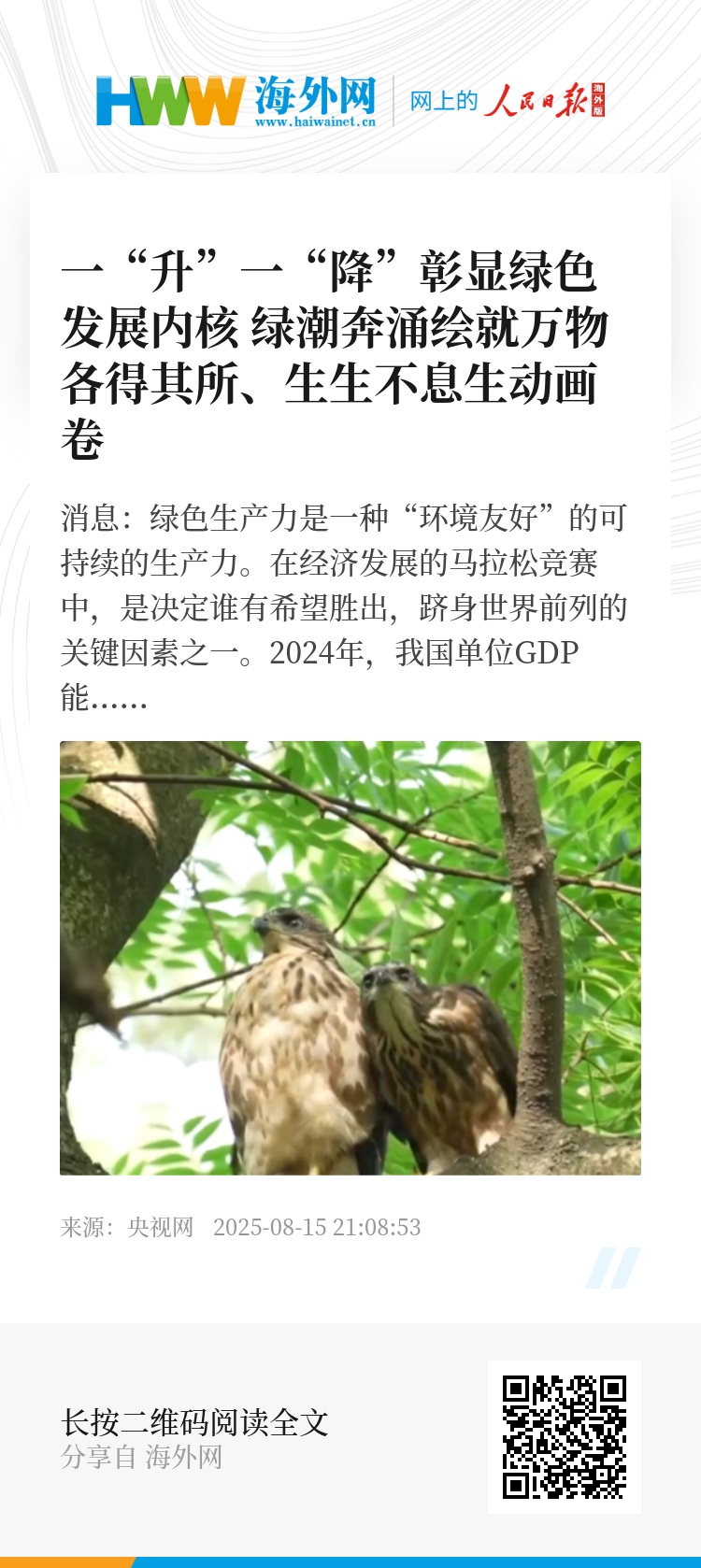 一降一升间,证明我国用更少的能源资源创造出了更多的社会财富。这种“降耗”与“增效”的协同,正是绿色发展的内核。从拼资源消耗转向拼技术效率,这就是“更绿色的生产力”带来的变化。