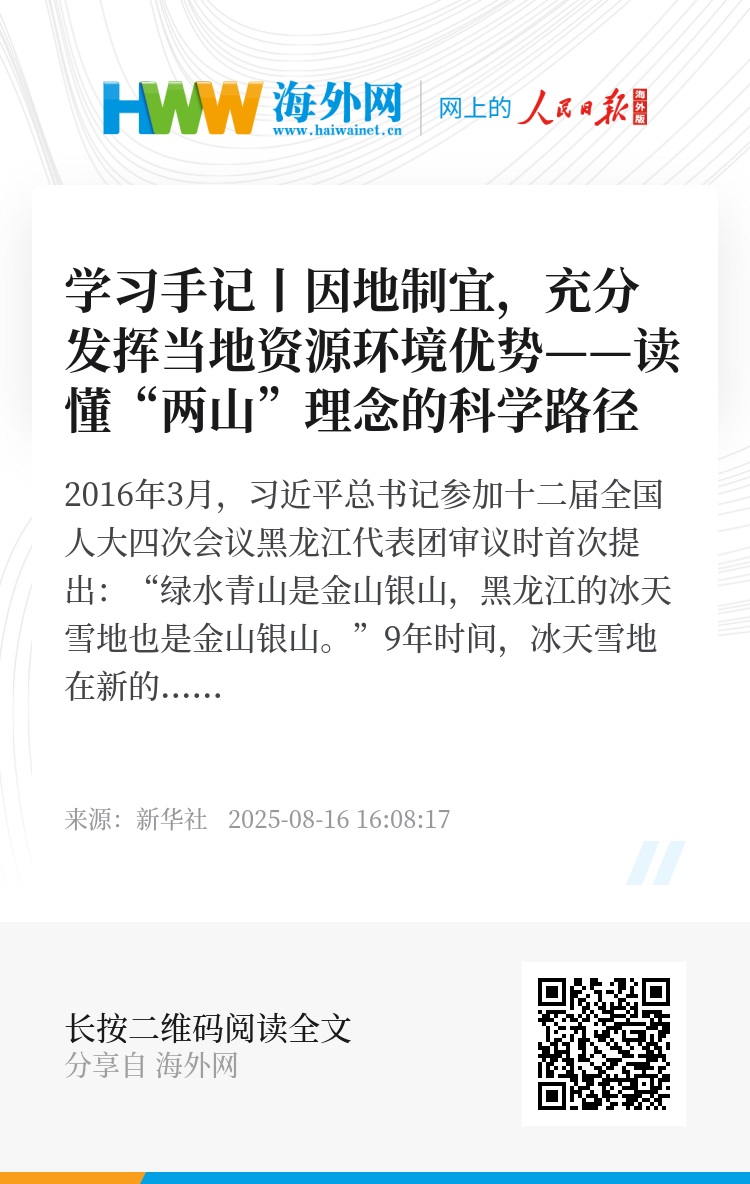 立足资源禀赋、技术优势、发展阶段,看到不同区域生态价值转化的能力和路径差异。以“两山”理念照亮发展路径,打好特色牌,念好务实经,各地才能打造独特优势,走好发展之路。