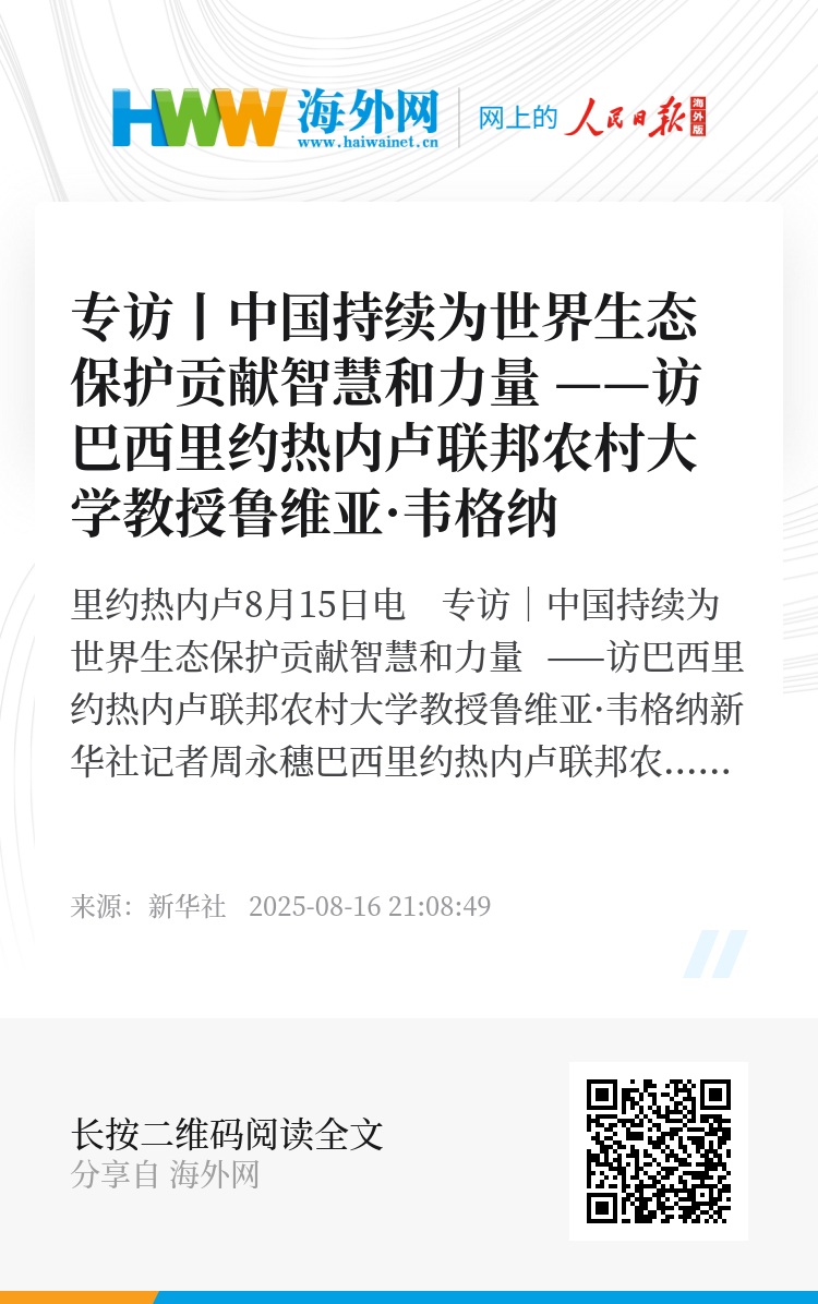 新华社里约热内卢8月15日电 专访|中国持续为世界生态保护贡献智慧和力量 ——访巴西里约热内卢联邦农村大学教授鲁维亚·韦格纳