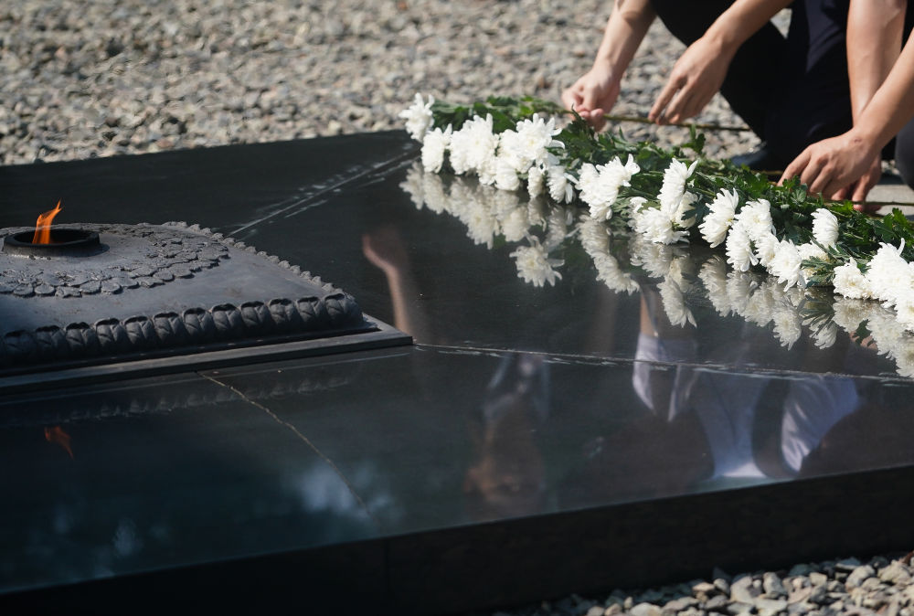 2019年8月15日,人们在侵华日军南京大屠杀遇难同胞纪念馆悼念遇难者。