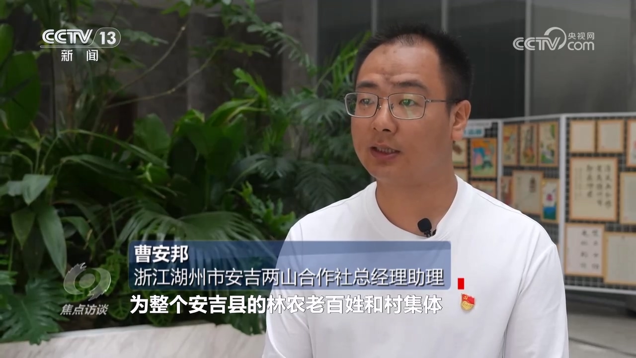 浙江湖州市安吉两山合作社总经理助理曹安邦:“随着这个项目的开发我们配套建设了1000多公里林道,包括100多个竹材分解点,配合竹产业的增值,为整个安吉县林农老百姓和村集体带动分红5亿元。”