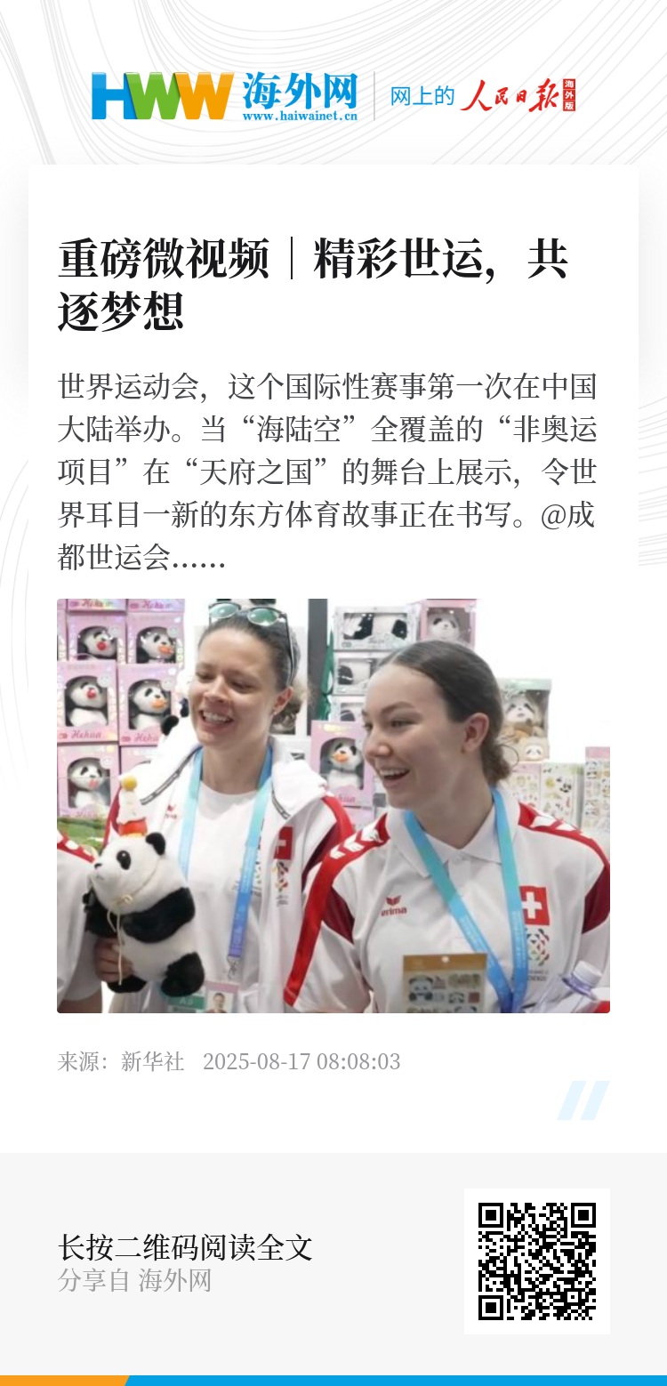 精彩世运,是赛场的欢呼,是城市的脉动,是无限的可能。以运动为桥,让世界看见东方的活力;以梦想为帆,驶向体育强国的彼岸。