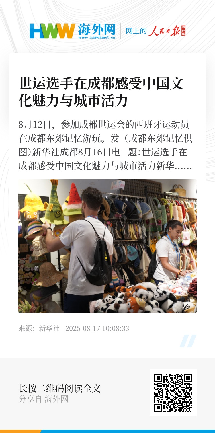 新华社成都8月16日电 题:世运选手在成都感受中国文化魅力与城市活力
