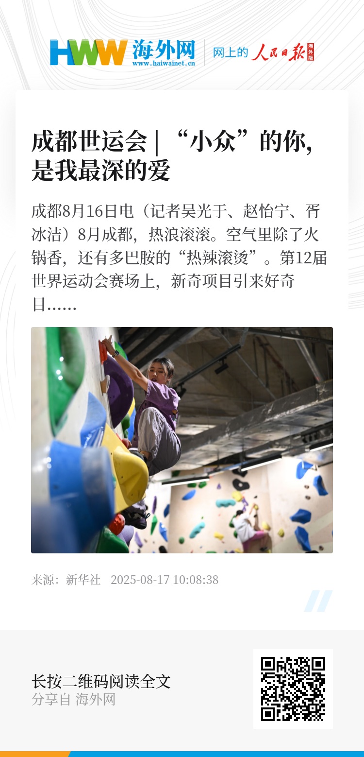 世运会即将落幕,赛会有期,生活无垠。运动项目也许有“大众”“小众”之分,但对生命的热爱、对体育精神的追求,无关大小,永无止境。