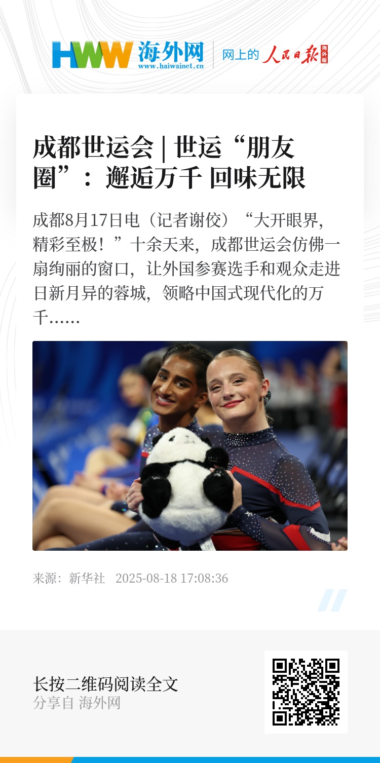 有的壁球选手比赛完,已经回家备战欧锦赛了,但在个人社交媒体上还在不停更新赛场照片和成都风光;不少人感叹第一次以国家代表团的身份参加综合性赛事,成都让自己更像一个“完整”的运动员,点滴都值得回味……这份“流连忘返”让因成都世运会而迸发的炽热情感,不止于当下,不止于赛事,不止于成都。