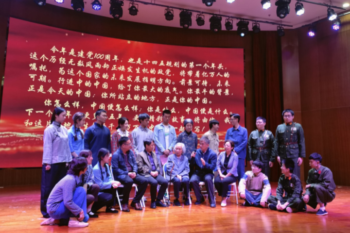 周淑真老人亲临情景剧《三封家书》排练现场。