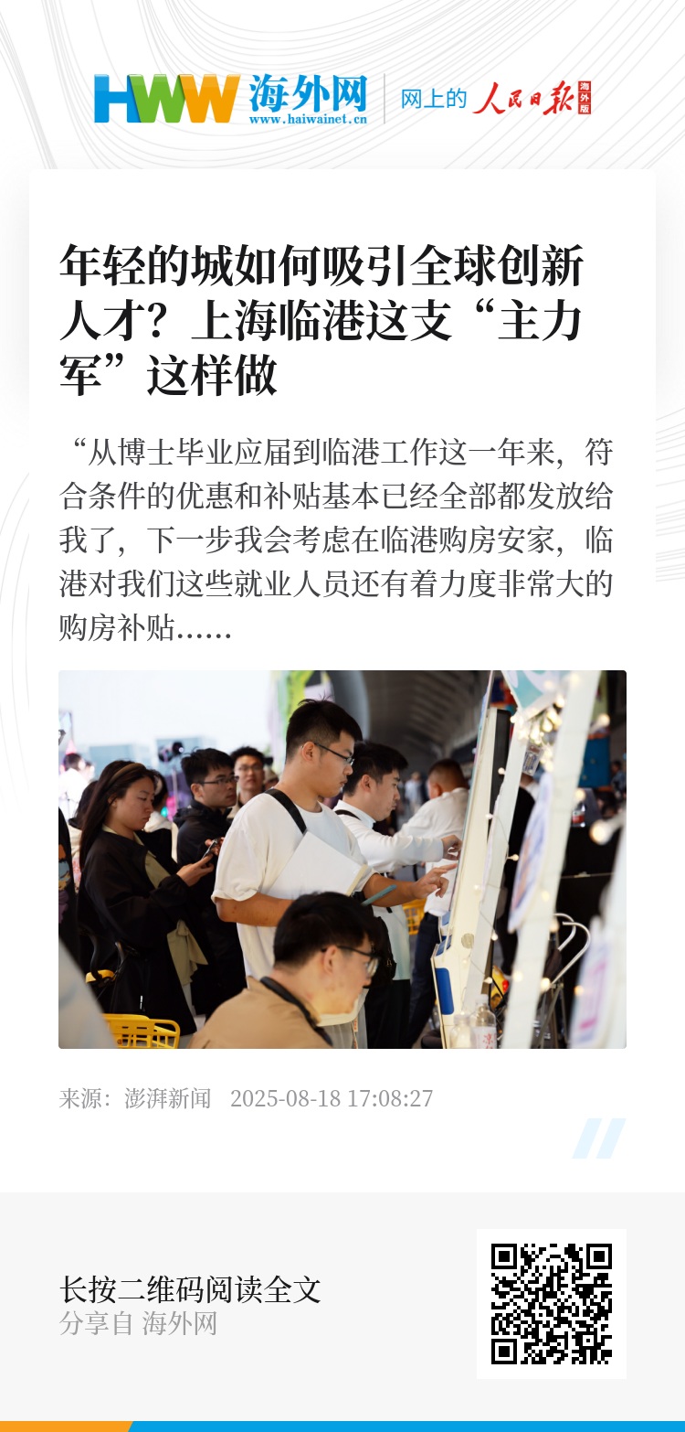 人才工作更深远的意义在于,围绕打造集聚海内外人才开展国际创新协同重要基地的战略目标,推动产业政策和人才政策深度融合、服务企业和服务人才深度融合、产业链和人才链深度融合,不断提升对海内外人才的吸引力,为打造更具国际市场影响力和竞争力的特殊经济功能区提供源源不断的人才资源和智力支撑。(澎湃新闻记者 贺梨萍)