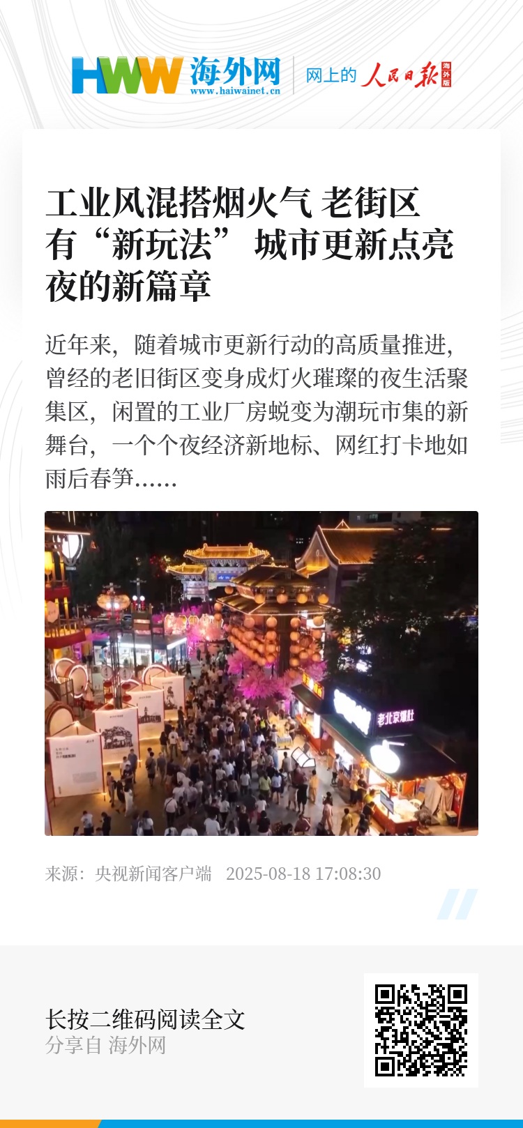 从滨水之畔的浪漫光影,到工业遗址的崭新地标,再到历史街巷的精彩重现,城市更新的画笔正为夜晚勾勒出万千色彩。人流如织,笑语如歌,见证的是消费活力,绽放的是生活诗意,诉说着中国城市夜晚无穷的精彩。