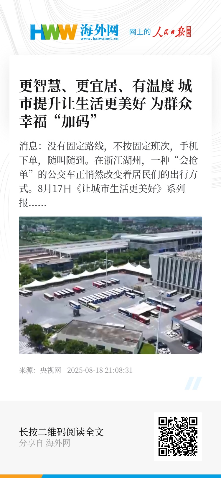 央视网消息:没有固定路线,不按固定班次,手机下单,随叫随到。在浙江湖州,一种“会抢单”的公交车正悄然改变着居民们的出行方式。8月17日《让城市生活更美好》系列报道,让我们去看看浙江湖州的动态公交。
