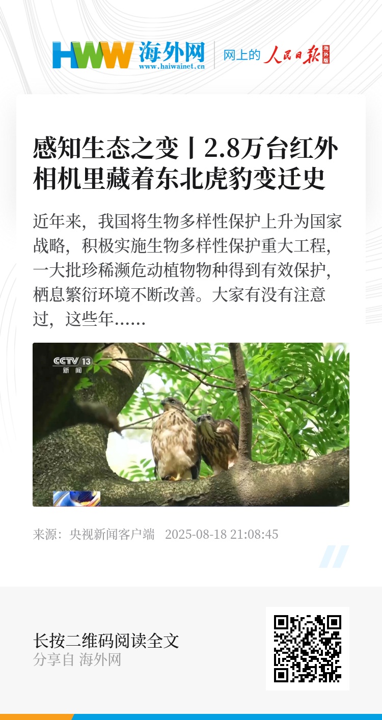 大家有没有注意过,这些年,窗外的鸟鸣多了起来,树丛中不时有小动物来访,这些情景里,不仅藏着一个地方的生命力,更藏着生物多样性保护的中国答案。走进东北虎豹国家公园,从一只老虎的脚印开始,感受人与自然和谐共生的美好变迁。