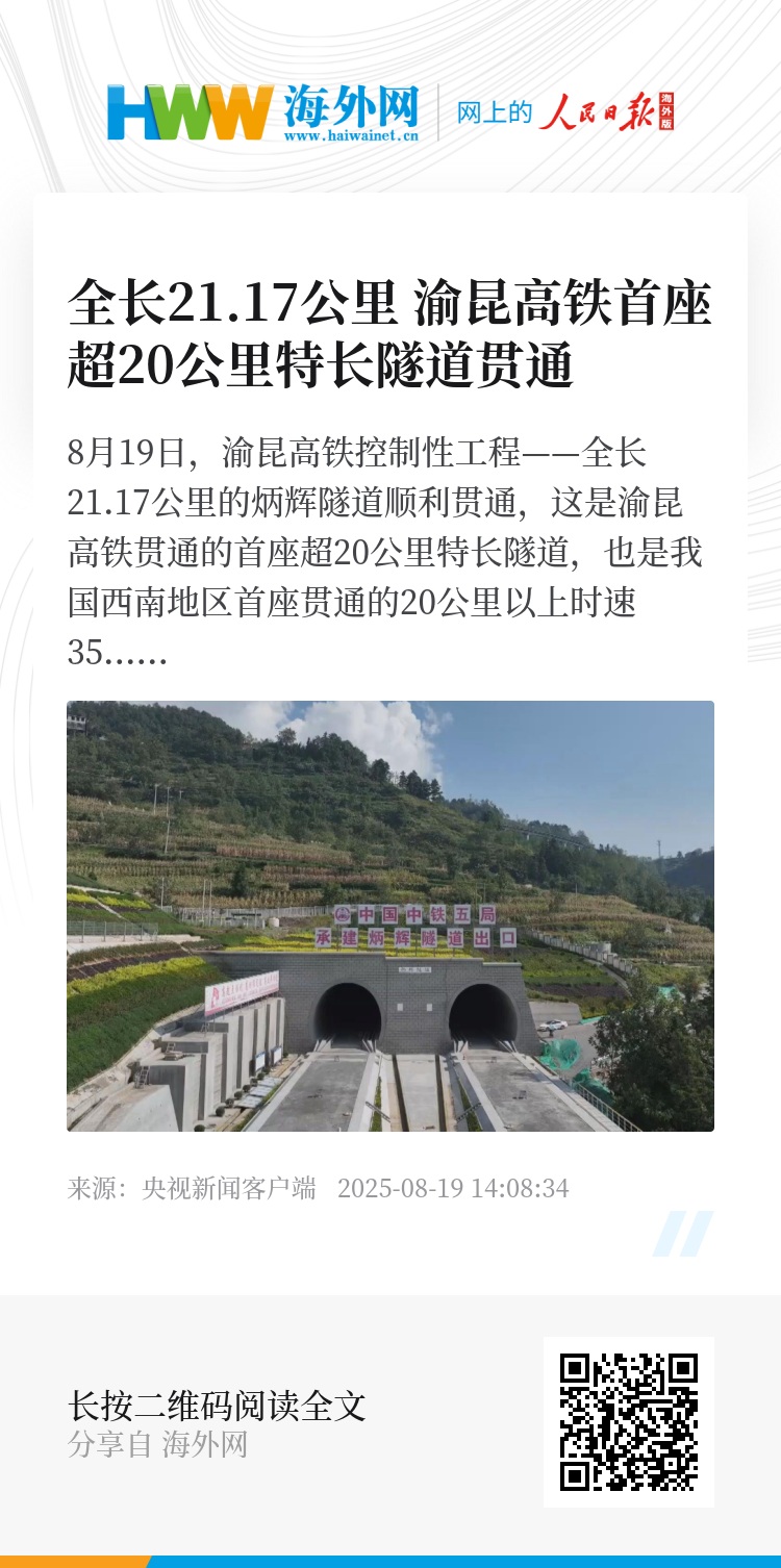 8月19日,渝昆高铁控制性工程——全长21.17公里的炳辉隧道顺利贯通,这是渝昆高铁贯通的首座超20公里特长隧道,也是我国西南地区首座贯通的20公里以上时速350公里的高速铁路特长隧道。