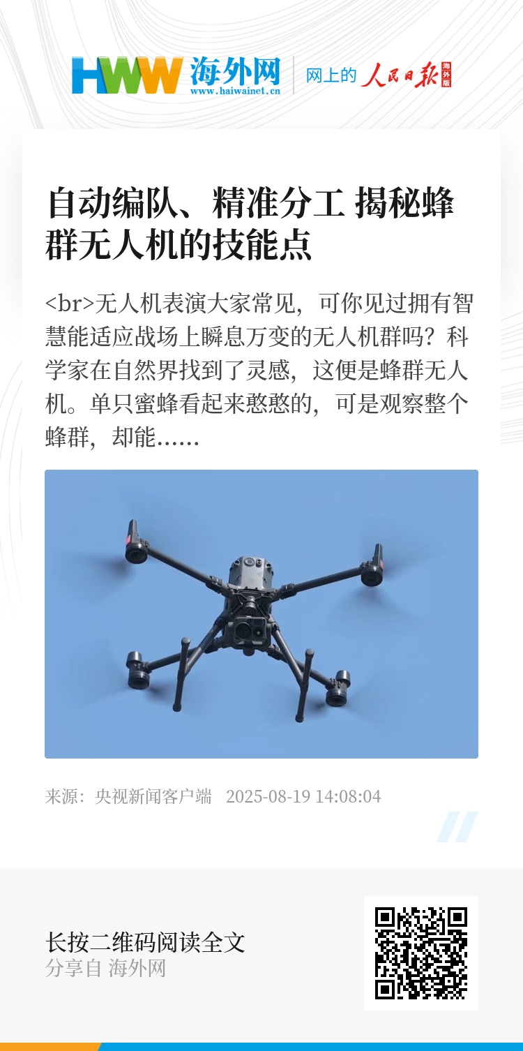 无人机表演大家常见,可你见过拥有智慧能适应战场上瞬息万变的无人机群吗?科学家在自然界找到了灵感,这便是蜂群无人机。