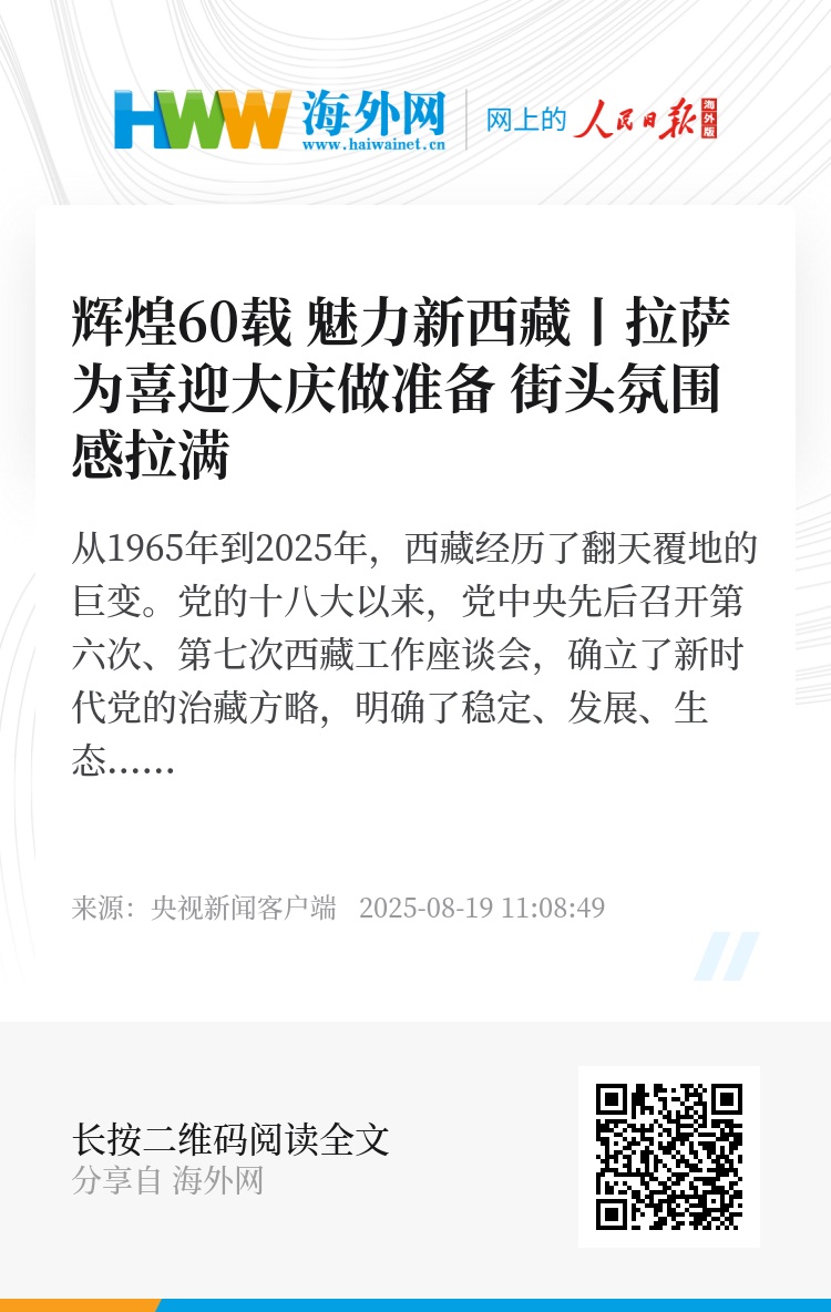 从1965年到2025年,西藏经历了翻天覆地的巨变。党的十八大以来,党中央先后召开第六次、第七次西藏工作座谈会,确立了新时代党的治藏方略,明确了稳定、发展、生态、强边四件大事,聚力“四个创建”,为西藏擘画了高质量发展的宏伟蓝图。在60年的发展历程中,西藏全区生产总值达到第一个千亿用了50年,而第二个千亿仅用了6年,创造了“短短几十年、跨越上千年”的奇迹。在西藏自治区成立60周年到来之际,拉萨干部群众正在为喜迎大庆做准备。准备工作做得怎样?城市面貌有什么新亮点?