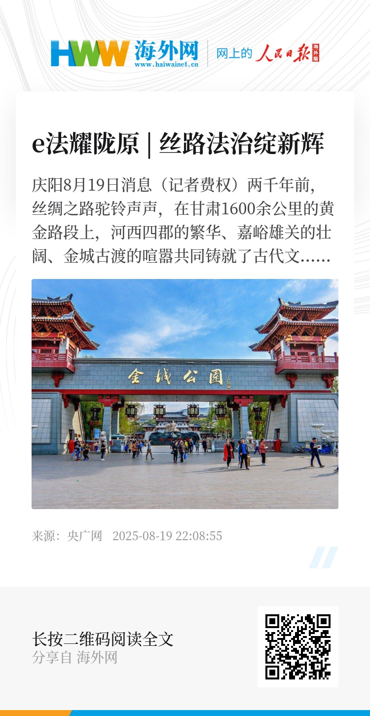 而今,当驼铃的余韵仍在戈壁回荡,这条承载着历史梦想的长廊之上,法治的光芒正与名胜古迹交相辉映,与壮美风光相得益彰;从丝绸之路的驼铃悠扬到数字时代的网络通畅,甘肃的法治建设始终与时代同频共振。