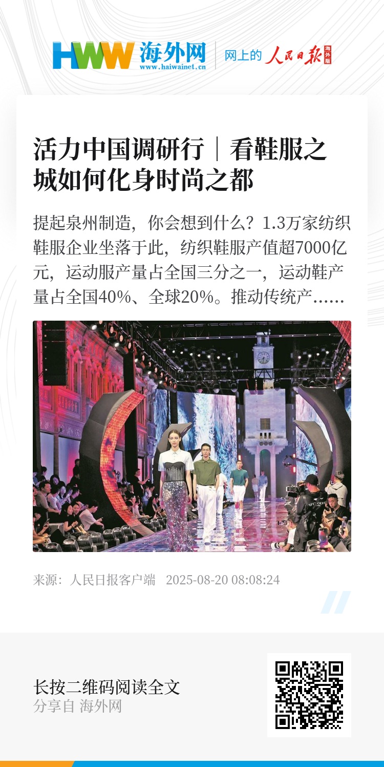 推动传统产业向“新”求质,如今,这座著名的鞋服之城,正以时尚创意赋能产业升级,打造“世遗之城 时尚之都”的新名片。