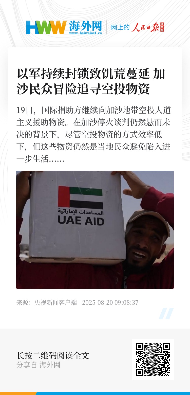 在加沙停火谈判仍然悬而未决的背景下,尽管空投物资的方式效率低下,但这些物资仍然是当地民众避免陷入进一步生活危机,乃至饥荒的保障之一。