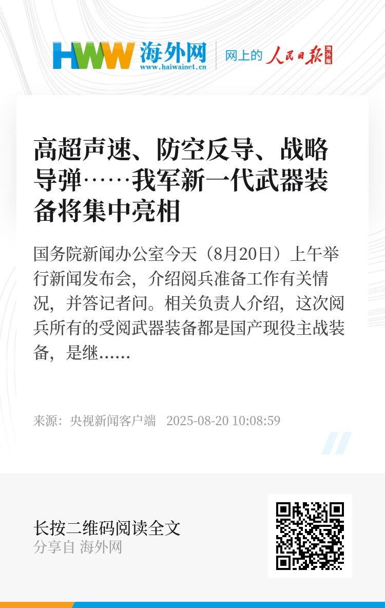 国务院新闻办公室今天(8月20日)上午举行新闻发布会,介绍阅兵准备工作有关情况,并答记者问。