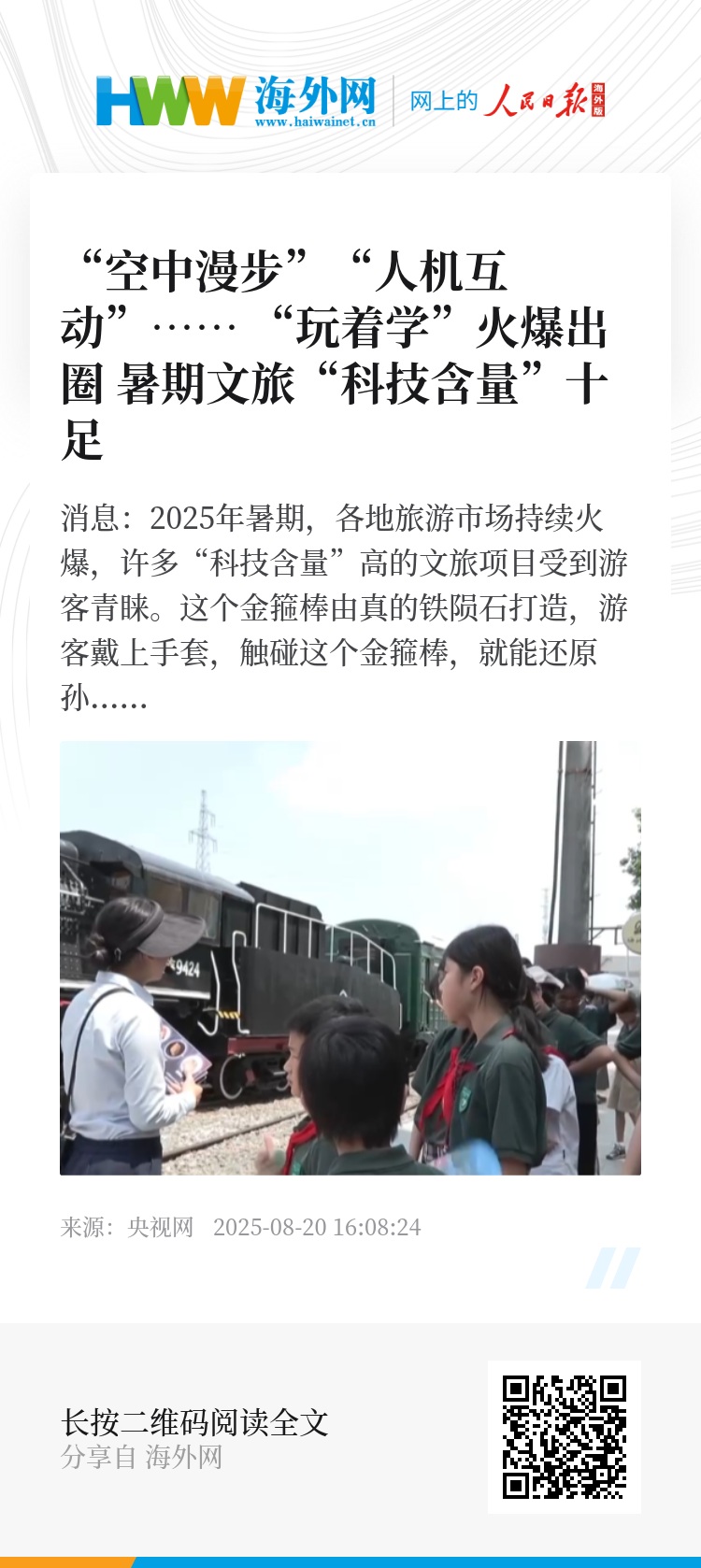 央视网消息:2025年暑期,各地旅游市场持续火爆,许多“科技含量”高的文旅项目受到游客青睐。