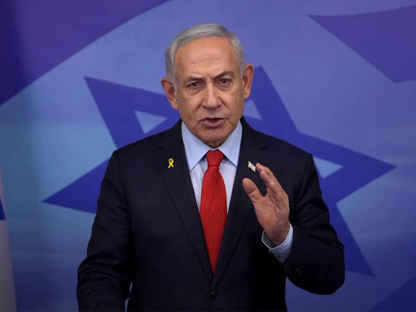 这是以色列总理内塔尼亚胡发表视频声明的视频截图(2024年11月26日摄)。新华社发(以色列政府新闻办公室供图)