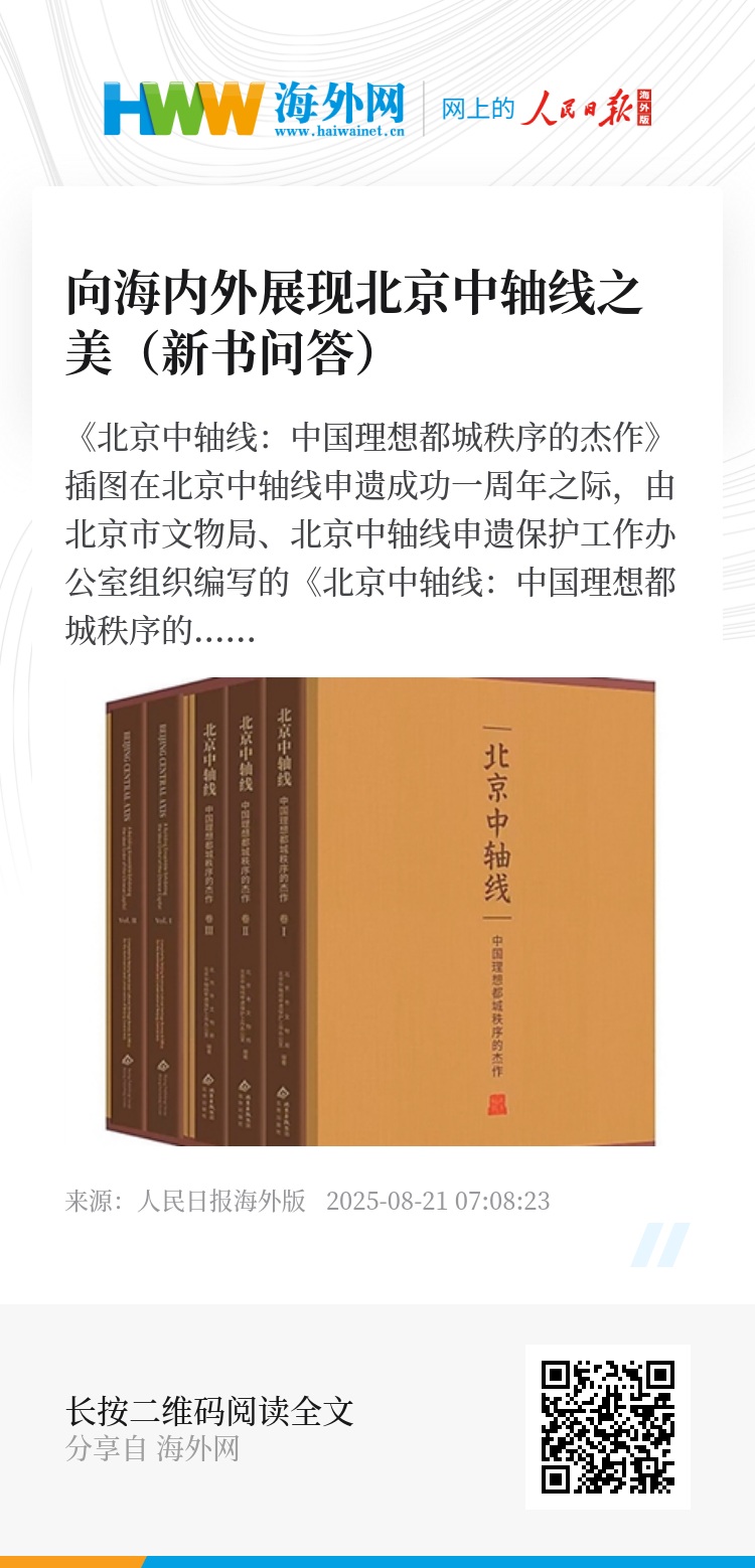 在丛书发布会上,我们还向大中小学校、图书馆、社区书店、遗产管理单位代表、留学生代表等进行了赠书,希望有更多人走近北京中轴线这一“中国理想都城秩序的杰作”。(本报记者 张鹏禹)