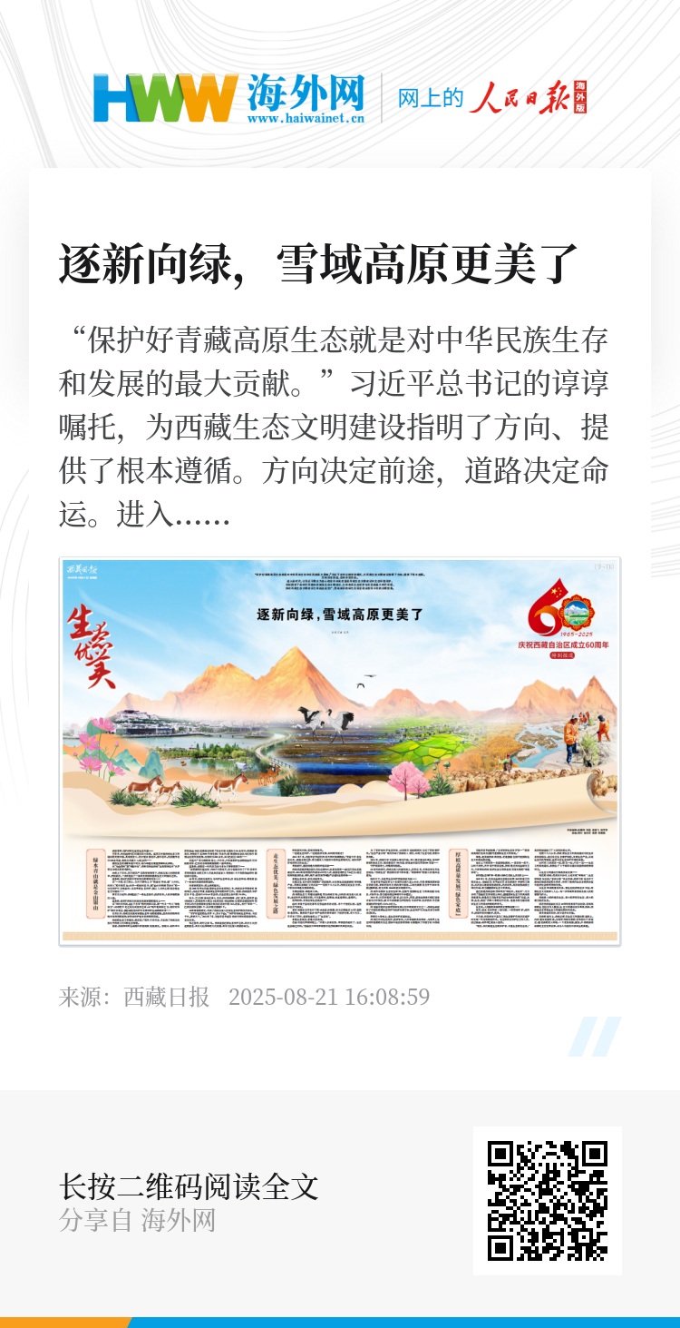 60载风雨兼程,西藏各族人民迎难而上、攻坚克难,有效应对各类生态挑战,“西藏生态”的独特优势不断彰显,“高原绿肺”的强大功能日益迸发。