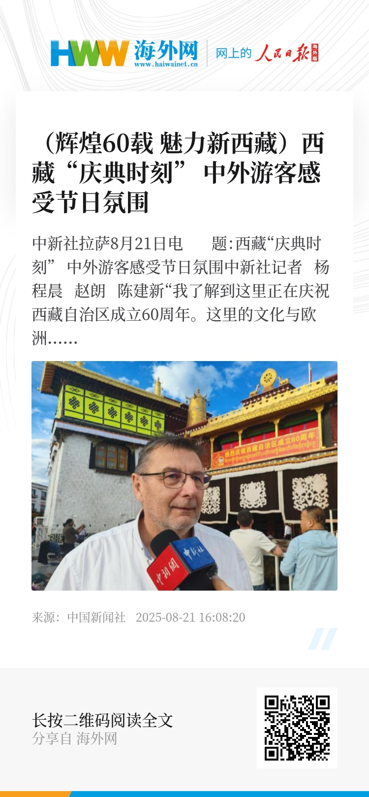 中新社拉萨8月21日电 题:西藏“庆典时刻” 中外游客感受节日氛围