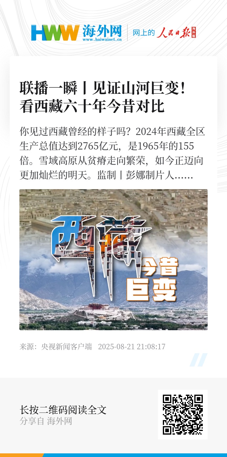 你见过西藏曾经的样子吗?2024年西藏全区生产总值达到2765亿元,是1965年的155倍。雪域高原从贫瘠走向繁荣,如今正迈向更加灿烂的明天。